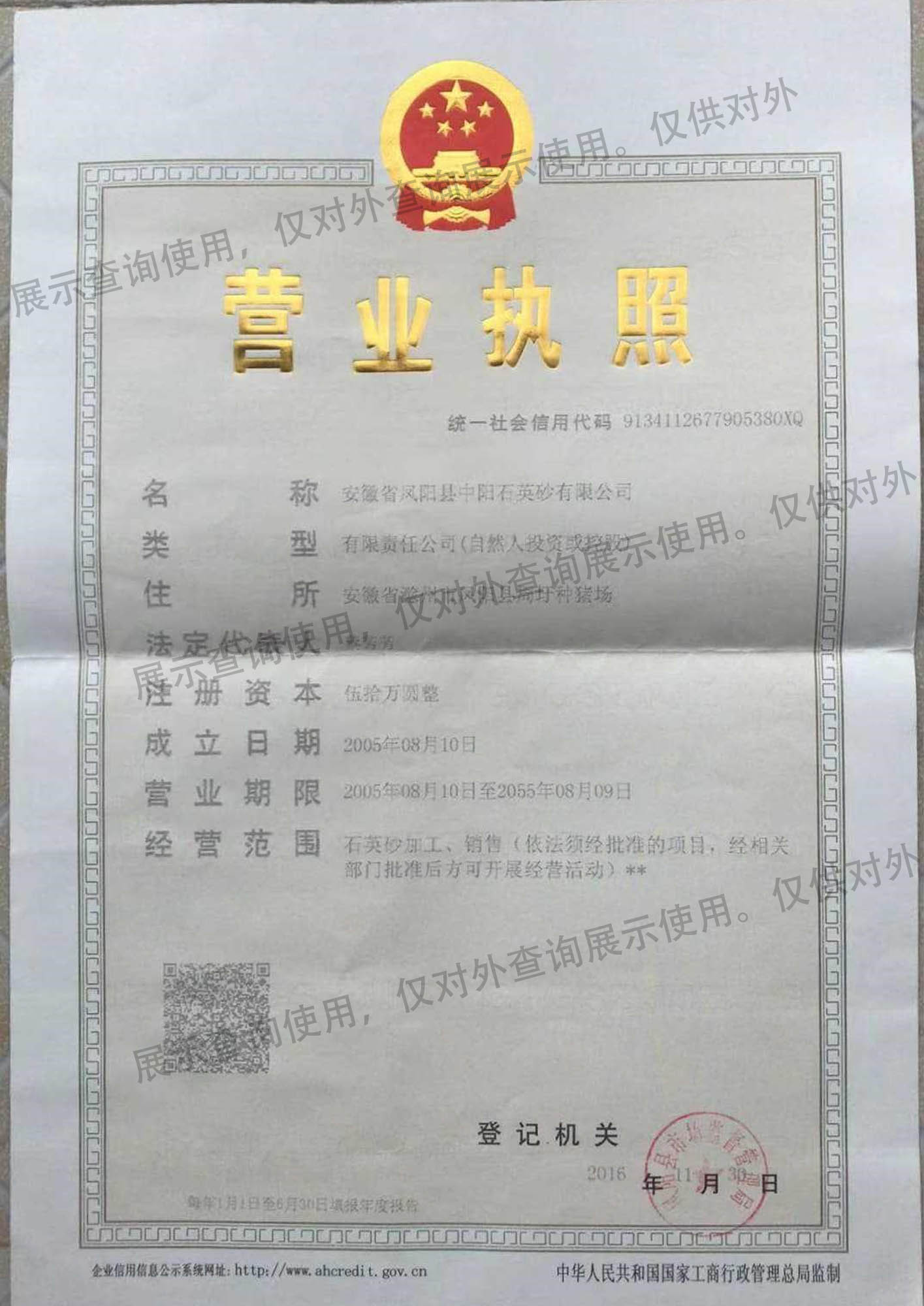 - 安徽省鳳陽(yáng)縣中陽(yáng)石英砂有限公司